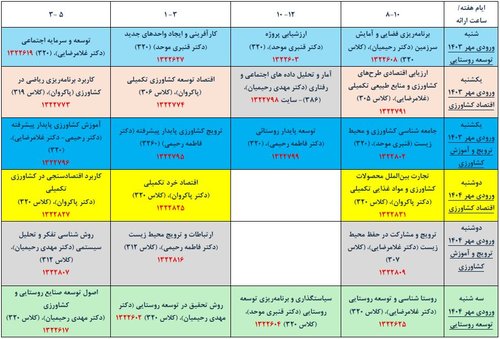 برنامه هفتگی اساتید گروه اقتصاد کشاورزی و توسعه روستایی