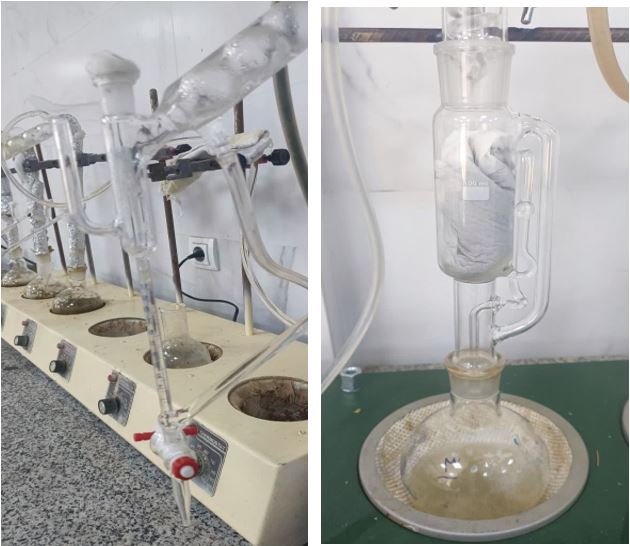 اندازهگیری و استخراج اسانسها: استخراج اسانس با بهرهگیری از روش تقطیر با آب (Hydrodistillation).